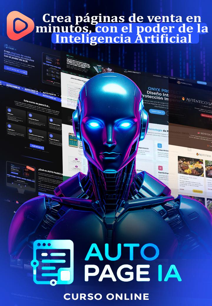 AUTO PAGE IA es un curso online que te enseña a crear páginas de venta profesionales y de alto impacto en cuestión de minutos, sin conocimientos previos de diseño, programación o redacción publicitaria. A través de herramientas de Inteligencia Artificial como Gemini, Chat GPT, Google IA Studio y otras, aprenderás a generar sitios web visualmente atractivos, estratégicamente estructurados y optimizados para convertir visitantes en clientes reales.